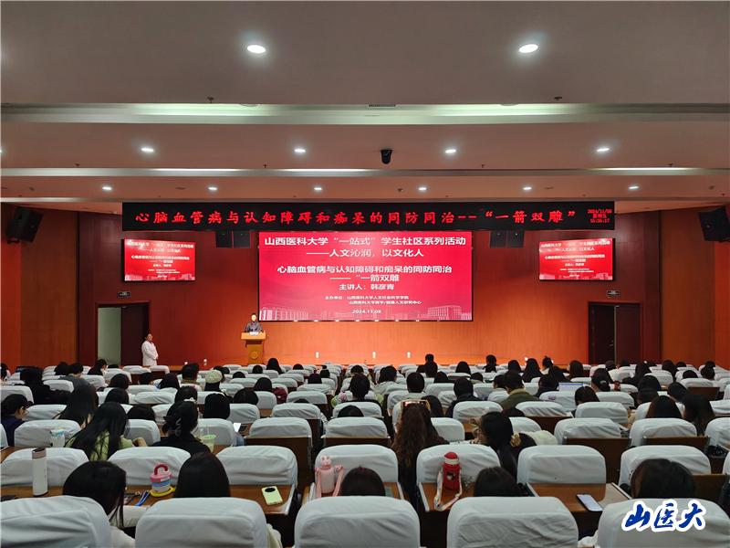 11月8日下午,應(yīng)我校人文社會科學(xué)學(xué)院和醫(yī)學(xué)健康人文研究中心邀請,附屬心血管病醫(yī)院神經(jīng)內(nèi)科主任、國家高級認知中心、龍城記憶和運動障礙多學(xué)科中心主任負責人韓彥青在學(xué)校杏林社區(qū)作專題講座。學(xué)校人文社會科學(xué)學(xué)院院長、暖煦樓B座樓棟長鄧蕊教授主持講座,300余位師生聆聽了講座。