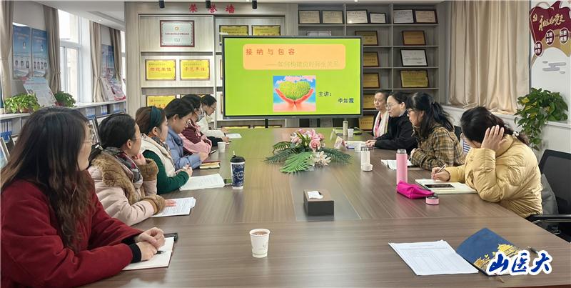 11月19日下午,學(xué)校在迎澤校區(qū)舉行了2024年第四期輔導(dǎo)員沙龍活動(dòng)。山西省心理咨詢(xún)協(xié)會(huì)副會(huì)長(zhǎng)、國(guó)家二級(jí)心理咨詢(xún)師李如霞老師應(yīng)邀以“接納與包容——構(gòu)建良好的師生關(guān)系”為主題進(jìn)行培訓(xùn)交流。沙龍由學(xué)生工作部主辦,明德潤(rùn)心坊輔導(dǎo)員工作室承辦,學(xué)生工作部副部長(zhǎng)楊洋主持。
