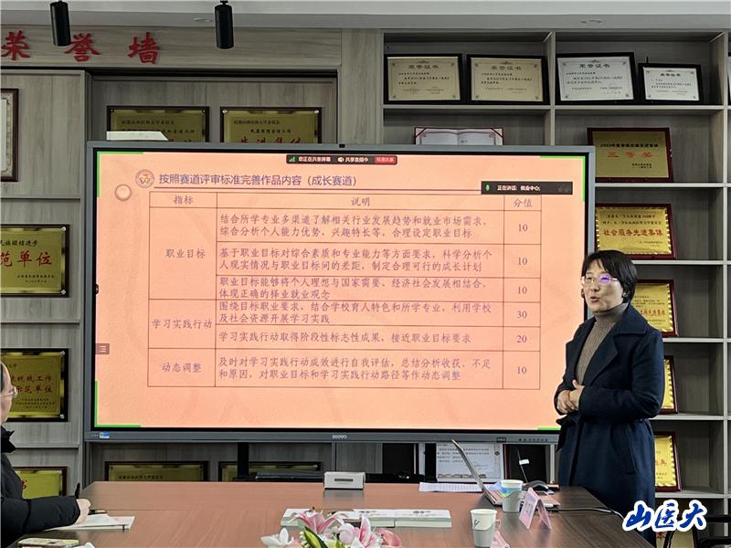 作為山西省高校就業(yè)創(chuàng)業(yè)指導師資庫成員,李紅霞老師以“筑夢青春,規(guī)劃未來”為主題,結合自身工作,分享了一系列輔導員在大學生職業(yè)規(guī)劃和就業(yè)指導工作中的方法和經(jīng)驗,并以首屆大學生職業(yè)規(guī)劃大賽中的優(yōu)秀案例和其取得的優(yōu)異成績?yōu)闃颖?,詳細闡述了輔導員在大學生職業(yè)規(guī)劃大賽中所扮演的重要角色,以及如何通過科學的指導和有效的輔導,幫助學生提升職業(yè)規(guī)劃能力,增強就業(yè)競爭力。同時,她建議輔導員要深入了解學生的專業(yè)背景、興趣愛好和職業(yè)規(guī)劃目標,幫助學生明確個人定位,制定科學合理的職業(yè)規(guī)劃方案,還要注重培養(yǎng)學生的創(chuàng)新思維和實踐能力,鼓勵學生積極參加各類社會實踐和志愿服務活動,豐富自己的社會經(jīng)驗和人生閱歷。