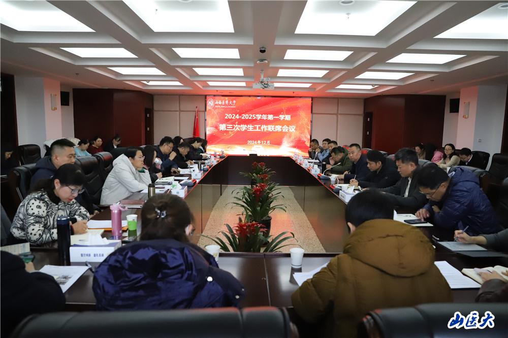 各學院(系、部)匯報了近期學生情況、宿舍衛生安全檢查整改情況、校園冬季“敲門行動”開展情況等。黨委宣傳部、武裝保衛部、團委、教務部、后勤保障部、研究生學院黨委、畢業生就業指導中心、學生工作部先后就近期工作進行了總結,對下一階段工作進行了部署。