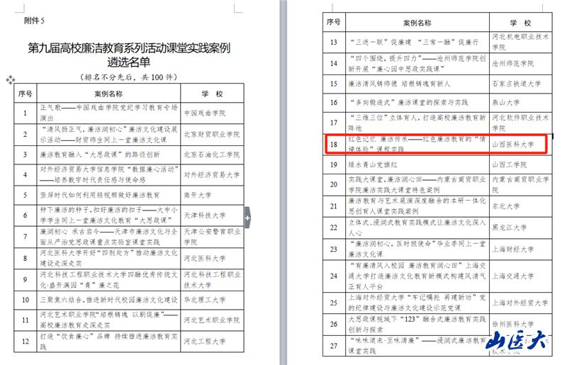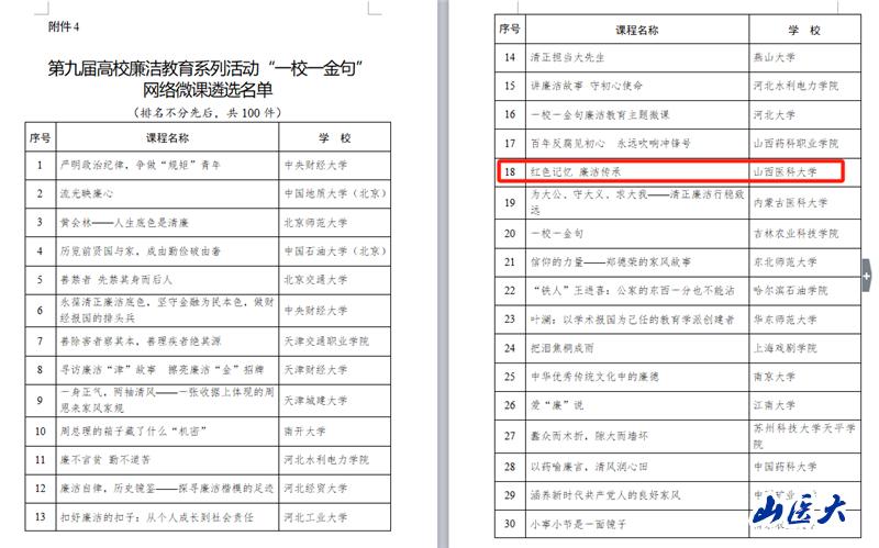 11月5日,教育部發布《關于第九屆高校廉潔教育系列活動結果的公示》。經省教育廳推薦,教育部組織專家遴。轎魘」燦7所高校報送的9個項目進入遴選名單。其中,由我校黨委宣傳部、馬克思主義學院牽頭報送的兩個項目入。胙∠钅渴瘓尤「咝V。其中,“紅色記憶 廉潔傳承”入選“一校一金句”網絡微課遴選名單,“紅色記憶 廉潔傳承——紅色廉潔教育的‘情境體驗’課程實踐”入選課堂實踐案例遴選名單。入選項目將在央視網、中國大學生在線、中國教育發布等平臺進行展播。