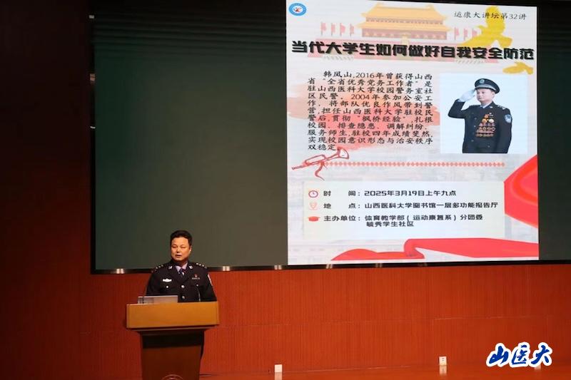 本次活動邀請晉中市公安局駐校民警韓鳳山警官以“當代大學生如何做好自我安全防范”為題進行了專題安全宣講。韓警官重點圍繞電信詐騙、情感糾紛、財物盜竊等與大學生校園生活密切相關的安全問題,深入剖析了各類安全隱患的:,通過典型案例分析,詳細講解了應對不同安全風險的策略,并特別強調大學生作為易受侵害群體,必須提高警惕,增強自我保護意識,避免遭受不必要的損失和傷害。