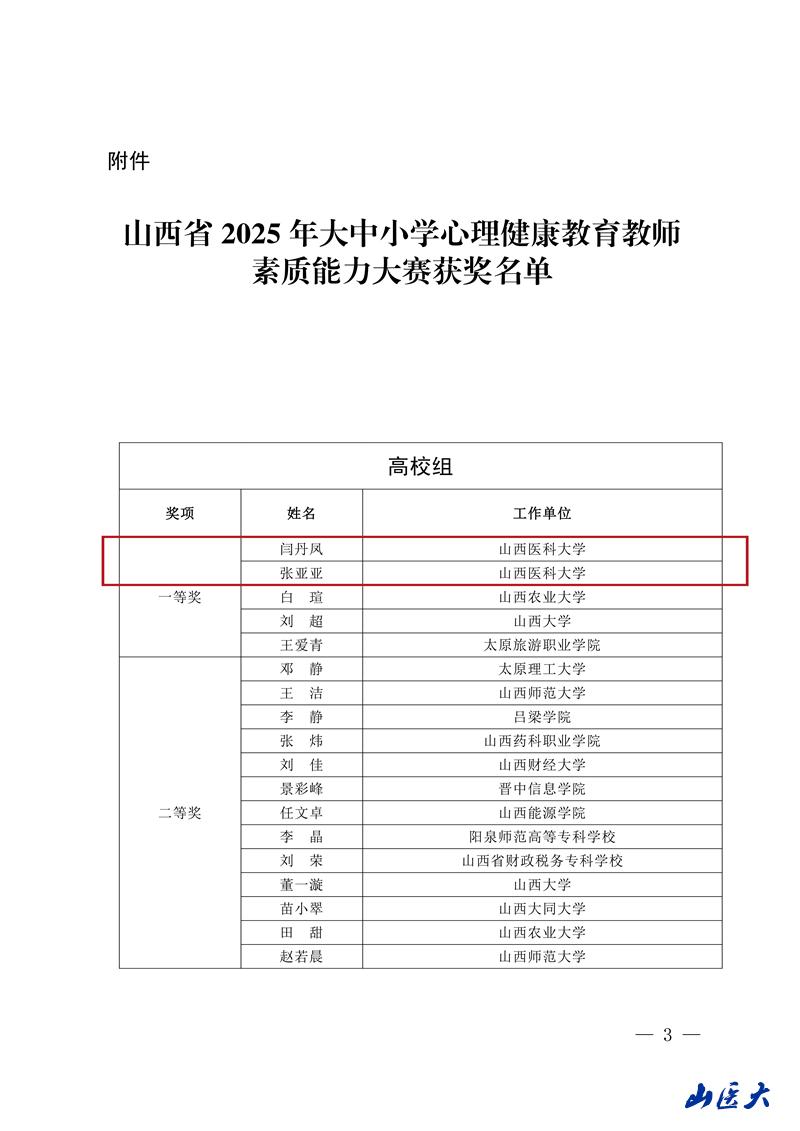 5月25日,我校在山西省大中小學(xué)心理健康教育教師素質(zhì)能力大賽中成績斐然。我校教師閆丹鳳、張亞亞以總分第一、二名的成績,分別獲得一等獎(jiǎng)。