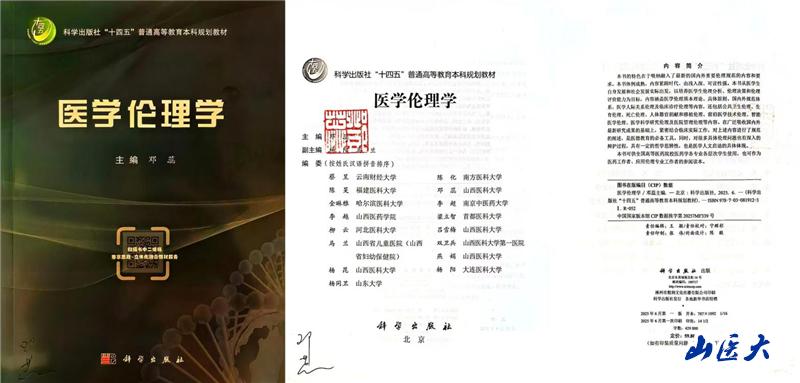 近日,由我校鄧蕊教授擔任主編的《醫學倫理學》教材由科學出版社正式出版發行。本教材為“十四五”普通高等教育本科規劃教材,是國家推動醫學教育與醫學人文深度融合的重要成果之一,本教材系統構建醫學倫理學的教學內容與育人體系,具有權威性、系統性與時代性。