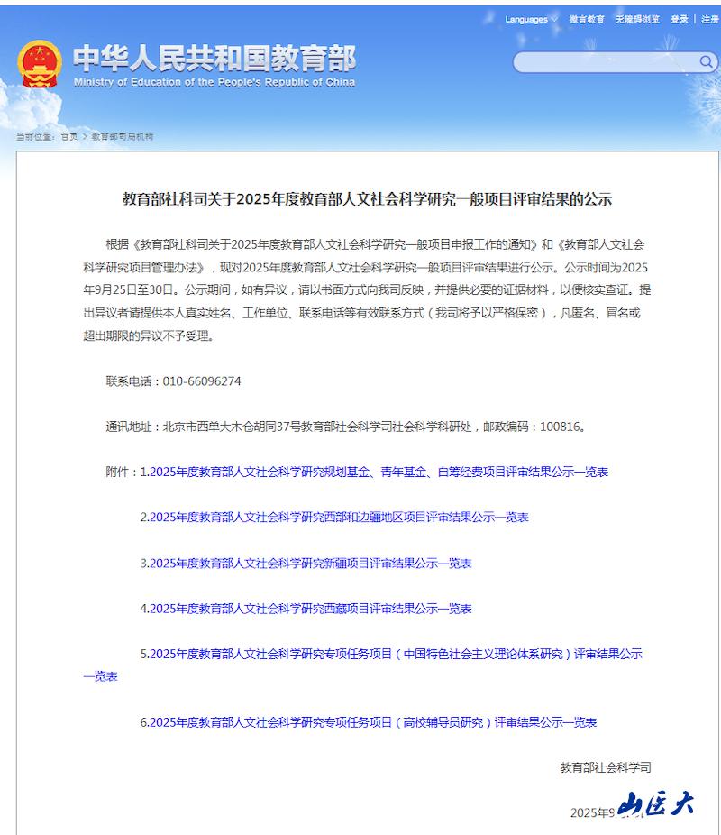9月25日,2025年度教育部人文社會(huì)科學(xué)研究一般項(xiàng)目評(píng)審結(jié)果公示,我校專職思想政治輔導(dǎo)員郜雅主持的《心理契約視角下研究生導(dǎo)學(xué)思政協(xié)同育人機(jī)制構(gòu)建研究》獲批2025年度教育部人文社會(huì)科學(xué)研究專項(xiàng)任務(wù)項(xiàng)目(高校輔導(dǎo)員研究)。