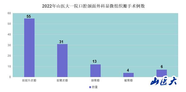 2022年,第一醫院口腔頜面外科團隊為1100余位住院患者進行了外科手術,其中口腔頜面頭頸腫瘤切除后行即刻顯微組織瓣修復者達109例,標志著口腔頜面外科在口腔頜面頭頸腫瘤與整復領域達到一個新高度,進入全國先進行列。