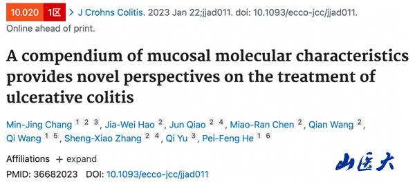近日,我校醫學信息學團隊在SCI-1區期刊Journal of Crohns & Colitis雜志(中科院1區,影響因子10.020分)發表最新研究成果《A compendium of mucosal molecular characteristics provides novel perspectives on the treatment of ulcerative colitis》。我校為第一完成單位,2021級圖書情報專業研究生常敏靜、2020級基礎醫學院本科生郝佳煒和2019級第二臨床醫學院研究生喬軍為共同第一作者,賀培鳳和于琦教授為共同通訊作者。