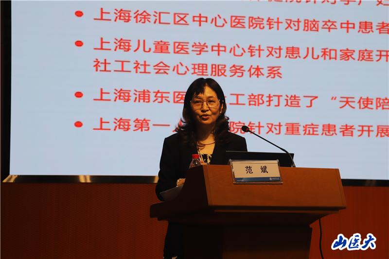 會議特邀中國社會工作協會副會長、華東理工大學范斌教授,重慶工商大學李濱教授,我校第二醫院團委書記張鵬作報告。各位專家以“醫務社會工作實務發展”為主題,共同探討醫務社會工作在多元模式下的建設與發展,探索醫務社會工作人才培養模式的優化路徑;分享討論了我國東、中、西部醫務社會工作發展現狀與趨勢。與會的其他專家學者分別就醫務社會工作崗位設置、專業水平提升、人才隊伍建設、服務模式創新等進行了熱烈討論,為現場師生帶來了一場學術盛宴。