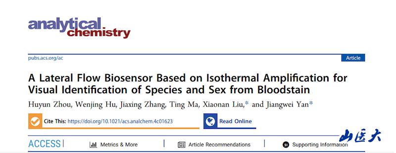 近日,我校法醫(yī)學(xué)院嚴(yán)江偉教授創(chuàng)新團(tuán)隊(duì)以犯罪現(xiàn)場(chǎng)生物檢材即時(shí)檢測(cè)為目的做出系列研究成果,在國(guó)際分析化學(xué)領(lǐng)域頂級(jí)期刊Talanta、Analytical Chemistry上先后發(fā)表了題為“Visual identification for species and sex derived from bloodstain based on phosphate-mediated isothermal amplification colorimetric system”“Lateral Flow Biosensor Based on Isothermal Amplification for Visual Identification of Species and Sex from Bloodstain”的研究論文。兩篇論文將等溫?cái)U(kuò)增技術(shù)分別與磷酸鹽介導(dǎo)的比色法及側(cè)向流層析裝置相結(jié)合,可實(shí)現(xiàn)犯罪現(xiàn)場(chǎng)痕量血痕的種屬和性別即時(shí)鑒定。