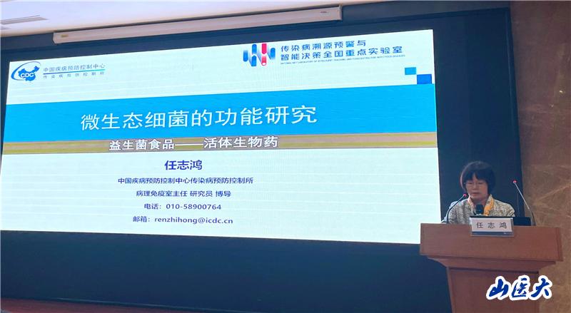 任志鴻研究員以《微生態細菌的功能研究》為題,介紹了益生菌的概念、發展史以及在抗腸道耐藥菌感染、免疫調節和抗呼吸道病毒感染中的作用。師生們就微生態細菌在健康領域的應用和未來發展進行了熱烈的互動交流。