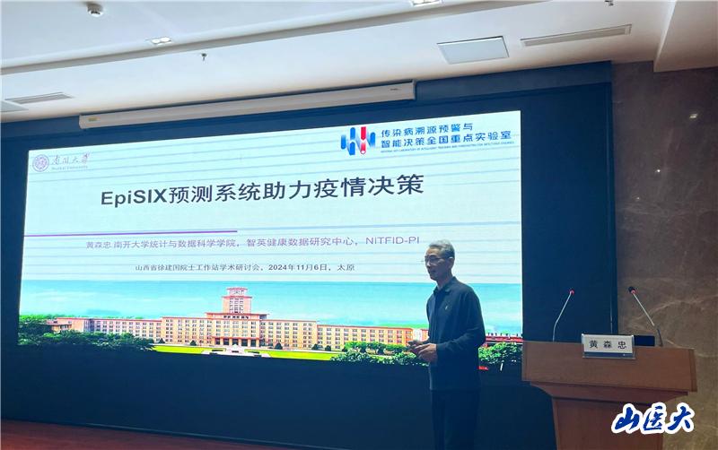 黃森忠教授以《EpiSIX預測系統助力疫情決策》為題,詳細介紹了EpiSIX預測系統在重大傳染病疫情決策中的應用,包括疫情研判、預測報告以及防控策略的制定。黃教授的報告引起了在場師生的濃厚興趣,大家就預測系統的具體應用和未來發展方向進行了深入的交流。