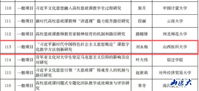 近日,全國哲學社會科學工作辦公室公示了2024年度國家社會科學基金高校思想政治理論課研究專項立項名單,由我校馬克思主義學院教師劉永梅主持的“‘習近平新時代中國特色社會主義思想概論’課數字化教學方法創新研究”獲批一般項目。這是我校首次獲批立項該類項目。