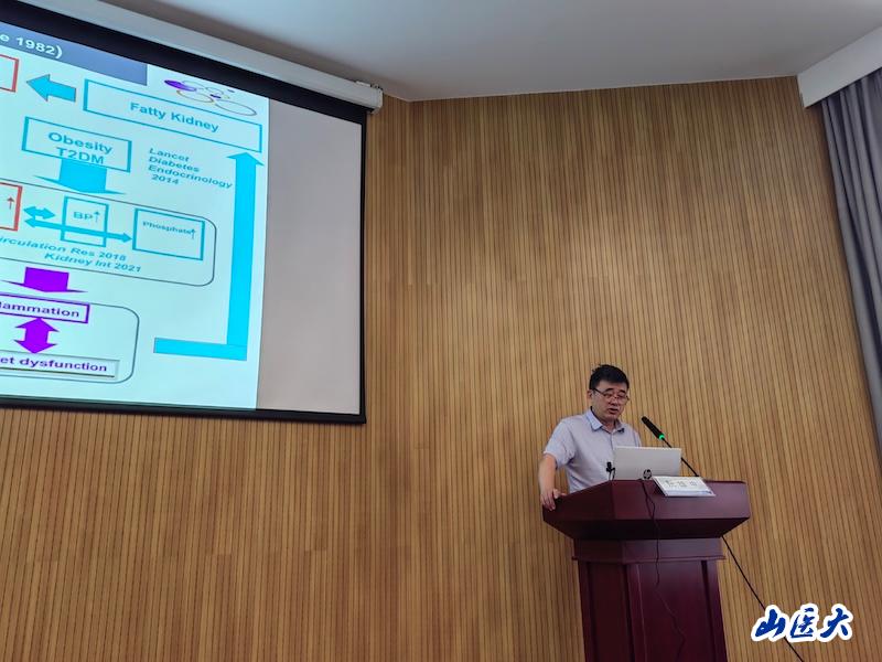 8月6日,受細胞生理學教育部重點實驗室邀請,重慶醫科大學校長助理、代謝病研究院院長、中國生理學會腎臟專業委員會主任委員阮雄中教授來我校指導交流。阮雄中教授做了題為“CD36與代謝相關性疾病”的學術報告,報告會由管又飛教授主持,校黨委常委、副校長焦向英,基礎醫學院院長陸利以及實驗室師生參會。阮雄中介紹了自己的學術研究歷程,總結了CD36在高血脂癥、動脈粥樣硬化、脂肪腎等代謝相關疾病中發生發展的作用,并講解了自己圍繞CD36在非酒精性脂肪性肝炎、肝癌、腎臟節律調控方面取得的創新性研究成果。長達90分鐘的學術報告讓每一位參會者都受益匪淺,阮雄中教授與現場師生展開了熱烈的交流討論。會上,阮雄中被聘為我校基礎醫學院客座教授。管又飛在總結發言中指出,重點實驗室師生要學習阮雄中教授圍繞某一領域重大科學問題進行長期、系統研究的范例,不要一味追求當前的研究熱點,要在某一個研究領域持之以恒地深耕;要圍繞一個重要問題全面、系統地開展科學研究,不能局限于單一的器官和系統。