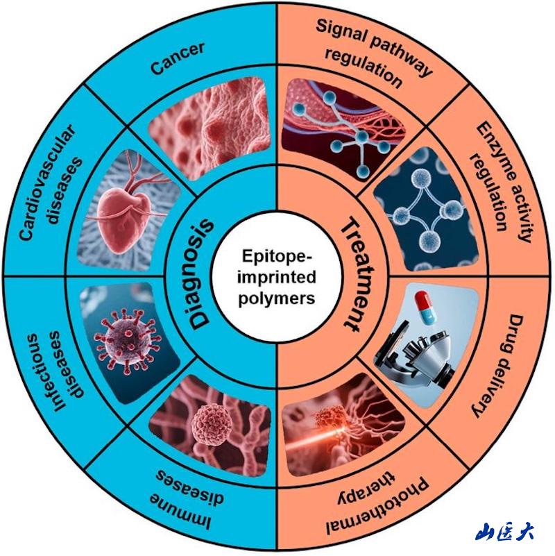 表位印跡聚合物(EIPs)是以蛋白質(zhì)的一小段特征肽段作為表位替代完整蛋白進(jìn)行印跡,從而確保了表位的結(jié)構(gòu)特異性能夠代表完整蛋白,避免了使用完整蛋白作為模板時(shí)存在的來源受限、構(gòu)象不穩(wěn)定等問題。近年來,EIPs在疾病診斷與治療領(lǐng)域中的應(yīng)用受到越來越多的關(guān)注。本論文綜述了EIPs在上述領(lǐng)域中的最新研究進(jìn)展。根據(jù)表位模板的數(shù)量和結(jié)構(gòu)特征對表位印跡策略進(jìn)行分類,并詳細(xì)討論了單表位印跡、雙表位印:凸瓜蟊砦揮〖2唄。重點(diǎn)總結(jié)了EIPs在癌癥、心血管疾病、傳染病和免疫性疾病等疾病診斷中的應(yīng)用,以及在調(diào)節(jié)信號通路、調(diào)控酶活性、藥物靶向遞送和光熱治療等治療策略中的應(yīng)用。簡要探討了EIPs在疾病診斷和治療中面臨的挑戰(zhàn)與未來發(fā)展前景。