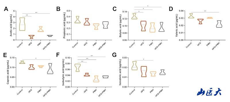 通過16s rDNA測序檢測暴露后小鼠腸道菌群的變化;采用糞菌移植技術探討腸道菌群紊亂在聯合暴露致心血管毒性中的作用;通過GC-MS/MS代謝組學檢測和篩選PM2.5和HFD暴露后小鼠血清代謝產物,并采取丁酸鈉干預方法探討與心血管損傷的關系,進一步研究可能的分子機制。