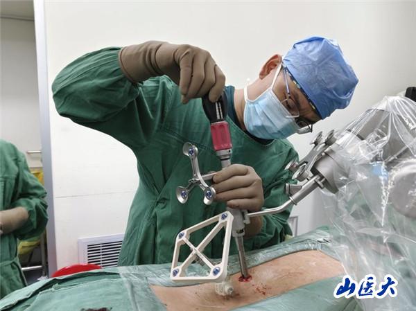 近日,我校第二醫院趙斌教授、趙軼波副主任醫師團隊完成省內首例脊柱機器人導航可視化置釘手術。