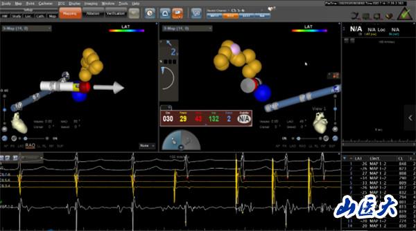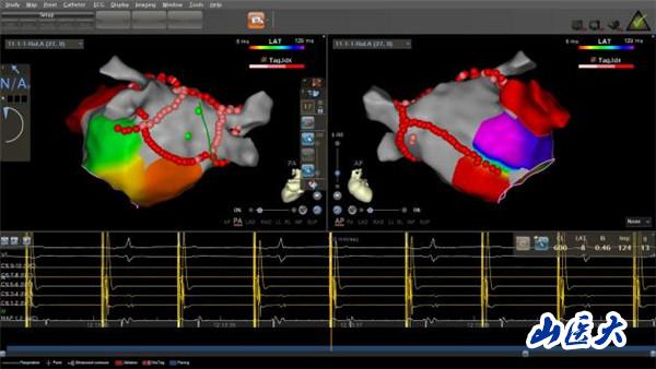 “射頻消融術(shù)?就是那種有輻射的手術(shù)嗎?”家屬聞此顧慮重重,怕射線給老人的身體帶來(lái)更大傷害。王睿主任醫(yī)師解釋說(shuō),在傳統(tǒng)射頻消融術(shù)中,X射線是實(shí)現(xiàn)手術(shù)可視化的必要條件,如果不借助X射線進(jìn)行操作,之前射頻消融術(shù)是無(wú)法實(shí)施的。隨著醫(yī)學(xué)技術(shù)的發(fā)展,目前采用CARTO(三維電解剖標(biāo)測(cè)系統(tǒng))開(kāi)展零X射線下射頻消融術(shù),就像給醫(yī)生安了一雙“慧眼”,無(wú)須在X射線透視下,即可實(shí)現(xiàn)精準(zhǔn)導(dǎo)航。這種新技術(shù),在手術(shù)過(guò)程中放置標(biāo)測(cè)電極和操作消融大頭電極等均采用三維電生理標(biāo)測(cè)系統(tǒng)指導(dǎo),完全不用X射線透視,卻對(duì)手術(shù)醫(yī)生技術(shù)的熟練程度、導(dǎo)管的操作技術(shù)以及心臟解剖三維理解要求極高。通過(guò)該技術(shù)既能獲得準(zhǔn)確靶點(diǎn),縮短手術(shù)時(shí)間,提升手術(shù)安全性,讓患者避免了X線輻射,也讓醫(yī)生避免了披“甲”上陣、負(fù)重手術(shù),因此被稱(chēng)為綠色電生理射頻消融術(shù)。