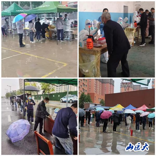 十一期間,太原市氣溫驟降,一連幾天小雨和大雨交替出現,給抗疫工作帶來了諸多不便。然而,第一醫院的護理人員并未停下雨中抗疫的腳步,她們天蒙蒙亮就趕到指定地點,迅速與各社區聯系,籌備防護物資,召集志愿者,投入工作。