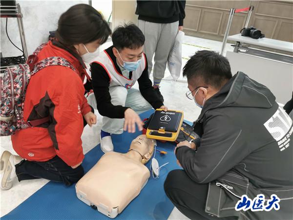 李偉亮老師和尹付連老師為現(xiàn)場群眾講解了白金十分鐘理念,演示了心肺復(fù)蘇、AED操作和嬰兒氣道異物梗阻急救法,通過講解,使民眾對心肺復(fù)蘇操作有了更深的了解,旨在著力加強(qiáng)社會自救互救建設(shè),努力普及“人人學(xué)急救,急救為人人”的理念。