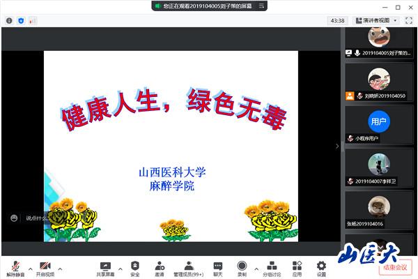 組織一次禁毒主題班會。全體本科生以年級為單位,在騰訊會議線上開展“大學生毒品預防安全教育”主題班會。主題班會主要講述了毒品的定義、:投暈拘形惱啡鮮,以及如何提高拒絕毒品的心理防御能力和自覺性,培養(yǎng)自覺與涉毒違法犯罪行為作斗爭的意識。