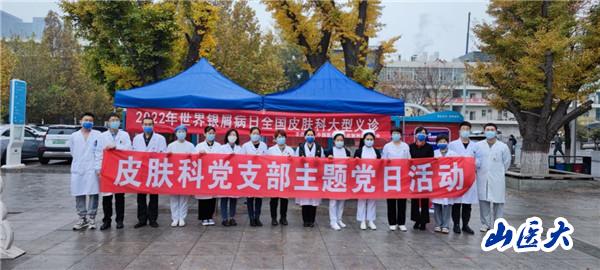 2022年10月29日是第19個“世界銀屑病日”,今年的主題是“攜手同行愛無銀”。上午9時,第一醫院皮膚科黨支部積極響應中國醫師協會皮膚科醫師分會的倡議,在1號住院樓前文化廣場舉辦了第十九屆“世界銀屑病日”專家義診活動。
