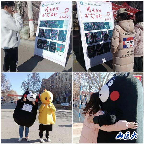 此次活動共分為五大部分,分別是“因愛而繪,為‘艾’而行”作品展示活動、“心連心,共:燜看焙燜看譜骰疃、“心連心,共抗艾滋病”便簽送祝?;顒?、“如果我是一個艾滋病患者,你愿意給我一個擁抱嗎”愛心實踐活動、“遠離艾滋,從我做起”簽名倡議活動。主題系列活動的開展,旨在引導同學們成為“抗艾”工作的傳播者、實踐者、堅守者。