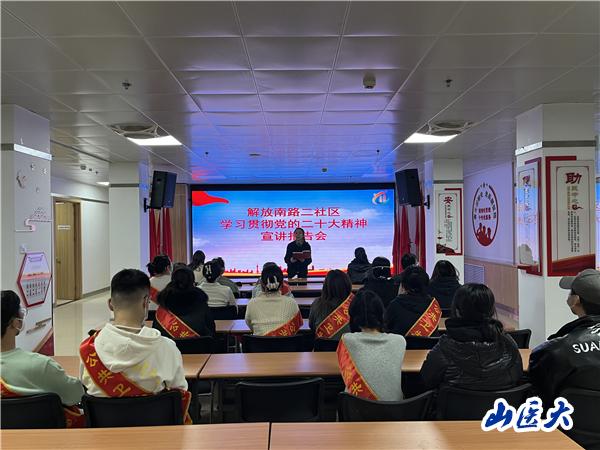 最后,社區面向學生志愿者開展了“學習貫徹黨的二十大精神宣講報告會”。社區黨委書記兼主任周渺對黨的二十大精神進行了全面講解與詮釋,同學們認真聆聽,獲益匪淺,更加堅定了永遠跟黨走的信心和決心,立志學好專業知識,練就過硬本領,牢記初心使命,矢志不渝地奮斗,為祖國發展貢獻自己的青春力量。