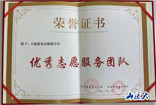 我校志愿者在抗擊疫情的關(guān)鍵時(shí)刻,挺身而出,沖鋒在前,勇于擔(dān)當(dāng),用實(shí)際行動(dòng)踐行了“奉獻(xiàn)、友愛、互助、進(jìn)步”的志愿服務(wù)精神,在疫情防控中筑起了一道“紅色堤壩”。這張證書更是對(duì)我們志愿服務(wù)的肯定與見證,口腔醫(yī)院“口院陽光志愿服務(wù)隊(duì)”一定會(huì)將志愿服務(wù)精神傳承下去,為太原創(chuàng)建全國(guó)文明城市做出更大的積極貢獻(xiàn)。
