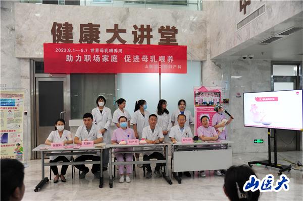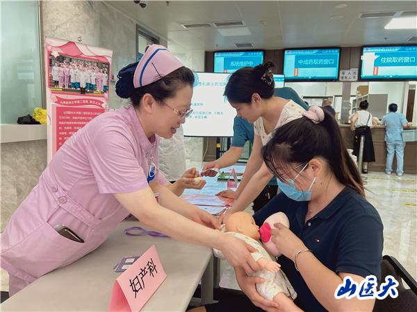 8月2日上午,在第32個世界母乳喂養周來臨之際,我校第二醫院婦產科聯合預防保健科、新生兒科、乳腺外科在門診大廳共同開展母嬰保健宣教活動。