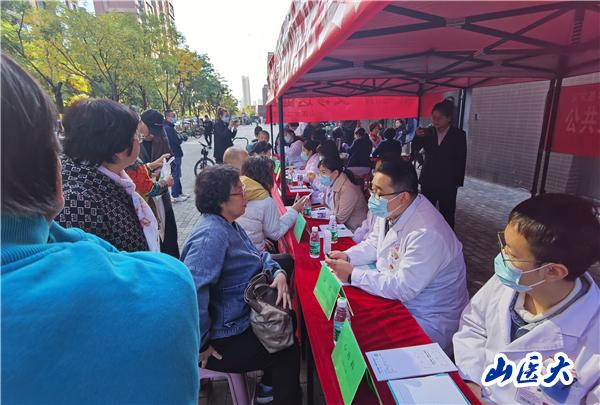 重陽敬老情,義診送健康。10月22日上午,我校第二醫院團委組織青年骨干醫生走進社區,為太原市萬柏林區小井峪街道的老年居民義診。