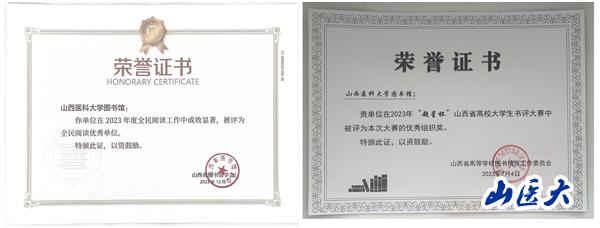 近日,我校圖書館先后獲得山西省文化和旅游廳頒發的2023年山西省群眾文化惠民工程群眾文化服務品牌活動“全民閱讀推廣”優秀組織單位、山西省高等學校圖書情報工作委員會“山西高校圖書館2022-2023 年先進集體”、全國圖書情報專業學位研究生教育指導委員會 “2023年全國圖書情報案例學術研討會暨圖書情報創新案例大賽”優秀案例獎。