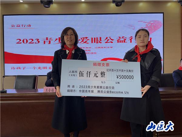 活動(dòng)中,中國青年報(bào)向晉中師范高等專科學(xué)校附屬學(xué)校捐贈(zèng)5000元專項(xiàng)愛眼資金,以支持學(xué)生購買相關(guān)的眼保健設(shè)備、書籍。高師附校的少先隊(duì)員們向到場(chǎng)嘉賓敬獻(xiàn)紅領(lǐng)巾,感謝他們熱心教育、關(guān)愛青少年眼睛健康的善舉。高師附校許慧副校長(zhǎng)代表全體師生對(duì)此次愛心活動(dòng)表示衷心的感謝。