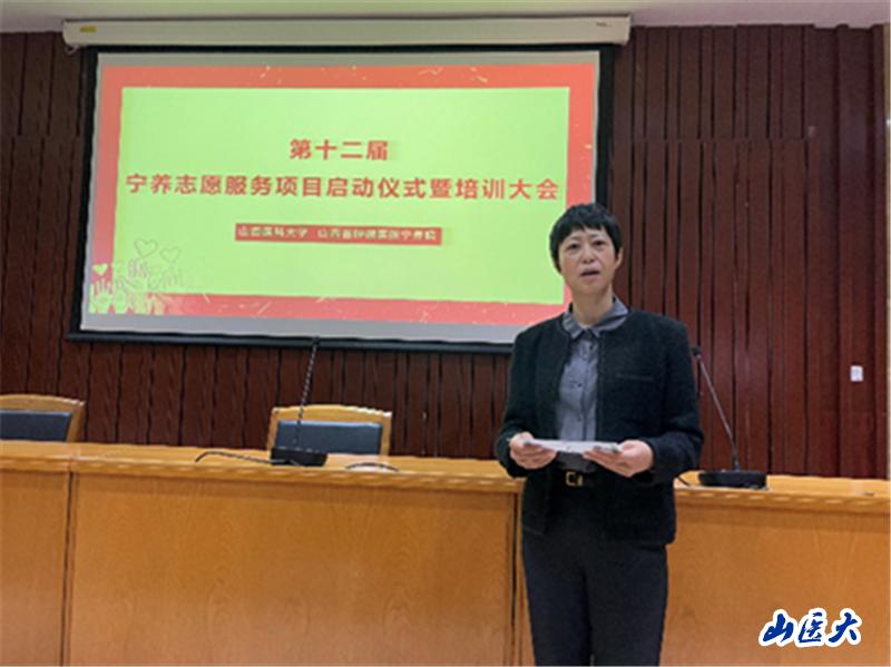 4月1日上午,我校寧養志愿服務隊在中都校區舉行第十二屆寧養志愿服務項目啟動儀式暨培訓大會。本次活動由人文社會科學學院與山西省腫瘤醫院寧養院聯合主辦。人文社會科學學院黨總支書記姚尚滿、院長鄧蕊、王志中教授、山西省腫瘤醫院寧養院主管護師辛麗艷、學院分團委負責人田璐敏、寧養志愿服務隊指導老師齊建、李建霞與寧養志愿服務隊的48名成員共同參與了此次活動。
