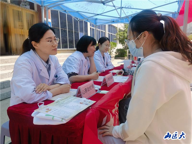 4月30日,我校第21屆心理健康月“青春健康向未來”志愿服務在迎澤校區順利開展。學生工作部副部長楊潔,心理健康教育中心主任閆丹鳳及我校第一醫院精神衛生科黨支部成員參加此次活動。