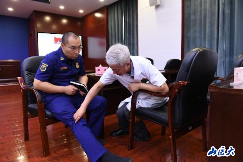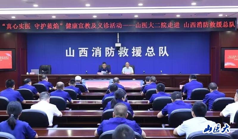 近日,我校第二醫院西院管理處副處長王小虎帶領醫學專家團隊走進山西省消防救援總隊開展健康科普宣傳及義診活動,為消防指戰員在炎炎夏日送去健康福祉。活動由省消防救援總隊副總隊長張華東主持。