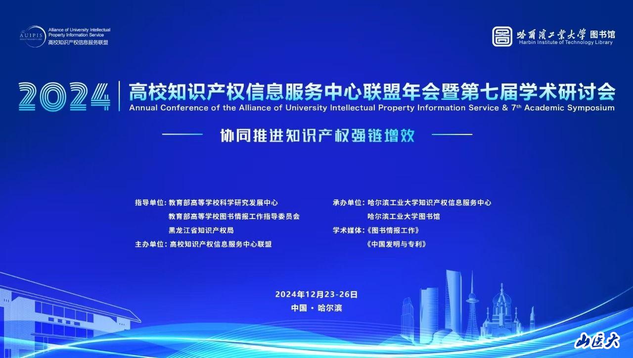 近日,在哈爾濱召開的“高校知識產權信息服務中心聯盟2024年年會暨第七屆學術研討會”上,我校圖書館成為“高校知識產權信息服務中心聯盟”成員單位。本次會議以“協同推進知識產權強鏈增效”為主題,就進一步推進高校知識產權信息服務中心聯盟工作,加強聯盟成員間的交流與合作,充分發揮高校知識產權服務在促進教育科技人才一體發展方面的支撐作用等問題,共商共議、共建共學,助力高?萍即蔥賂咧柿糠⒄埂
