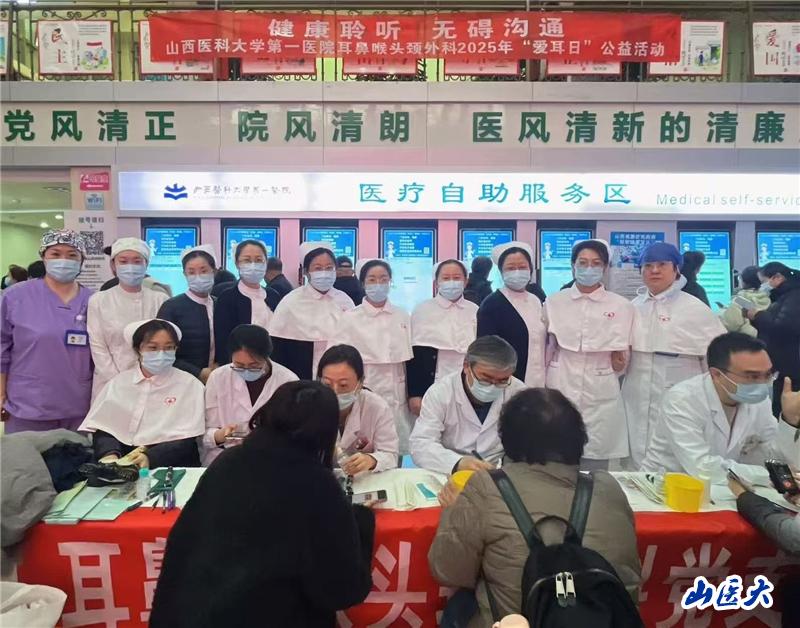 為響應國家政策,傳播愛耳護耳理論知識,提高公眾對耳部健康的關注,促進耳部健康治療和預防工作,3月3日,第一醫院耳鼻咽喉-頭頸外科主任皇甫輝教授,耳科負責人王建明教授,陳鋼鋼副教授、賀曉玲副教授、李瑩主治醫師等醫護人員在門診二層大廳舉行了義診宣傳活動。