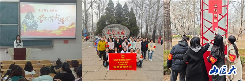 以團日活動內化雷鋒精神。學院各年級團支部以團課學習、交流研討、視頻觀看、我為身邊人做好事等形式開展學雷鋒團日活動,深刻學習雷鋒精神的內涵和時代價值,從理論到實踐,使同學們對雷鋒精神有了更深的理解和感悟。實習的同學也以別樣的形式開展活動,如長治市疾病預防控制中心實習的同學們走進了太行公園,助力清掃公園環境,志愿身影灑落在公園各個角落,他們將學雷鋒行動融入新時代文明實踐中,為市民營造了整潔溫馨的生活環境。