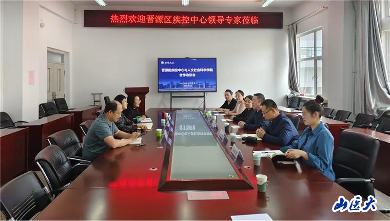 3月26日,太原市晉源區衛健局黨組成員喬建中,晉源區疾控中心主任郭仲康、副主任李榮妍帶領工作團隊赴我院進行合作洽談,人文社會科學學院鄧蕊院長、科研秘書張亞亞博士及張濤副教授出席會議。