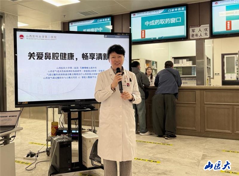 耳鼻咽喉頭頸外科醫(yī)護(hù)團(tuán)隊進(jìn)行了專題科普講座。楊利醫(yī)師作了《科學(xué)認(rèn)識與防治過敏性鼻炎》科普,解析了“免疫療法”前沿,讓大家了解過敏性鼻炎相關(guān)治療,解析花粉、塵螨等過敏原應(yīng)對策略,并指導(dǎo)正確使用鼻噴激素;趙潔護(hù)師作了《正確鼻腔沖洗,享受健康呼吸》科普,為大家介紹了為什么要進(jìn)行鼻腔沖洗、沖洗液類型、適合沖洗的不同人群,演示了標(biāo)準(zhǔn)化鼻腔沖洗步驟,以避免錯誤手法損傷黏膜;韓世鍇醫(yī)師帶來了《科學(xué)防治鼻病》的宣講,讓廣大患者正確認(rèn)識過敏性鼻炎,了解日常生活中如何區(qū)分過敏性鼻炎與感冒,以及“四位一體”的治療策略;侯偉護(hù)師作了《鼻腔小知識》科普講座,講解了是否可以修剪鼻毛、鼻出血如何正確處理、擤鼻涕的正確方式,以及挖鼻孔的注意事項等知識,以此提示大家日常中要愛鼻、護(hù)鼻。