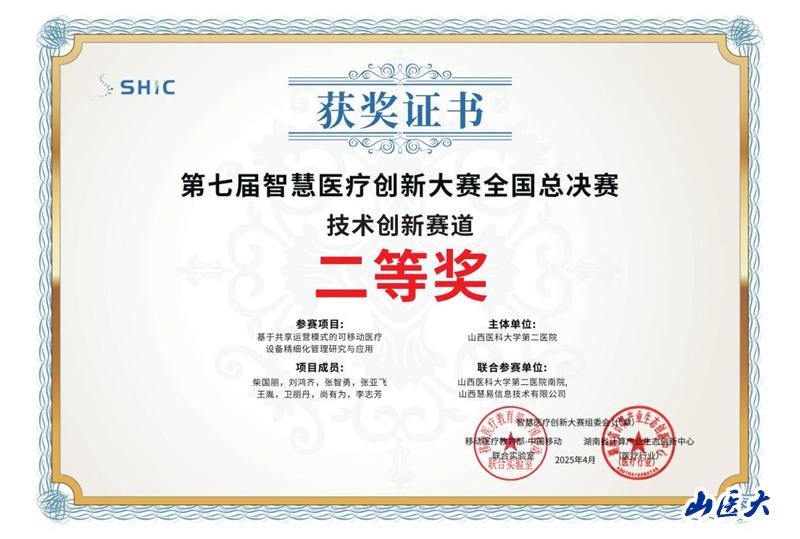 4月23日至25日,首屆醫療行業數字生態創新大會暨第七屆智慧醫療創新大賽全國總決賽在湖南長沙圓滿落幕。全國26個賽區、769個醫療創新項目激烈角逐,我校第二醫院信息運維中心憑借“基于共享運營模式的可移動醫療設備精細化管理研究”項目,以山西賽區第一名的成績晉級全國總決賽,并在225個入圍項目中脫穎而出,榮獲全國二等獎。同時,第二醫院另兩項創新成果“基于信創中臺互聯網+應用全生命周期管理”和“一站式遠程安全接入與運維管理”斬獲大賽優秀獎,彰顯了我校第二醫院在醫療數字化轉型中的實力。