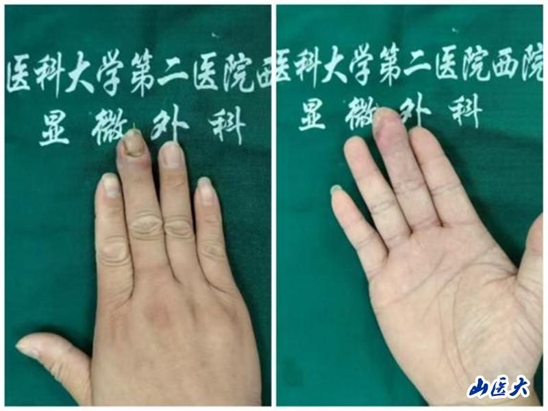 手術的成功不僅依賴于醫生的高超技術,術后護理同樣至關重要。第二醫院骨手顯微組護理團隊密切觀察再植指體的血運情況,醫護一體化共同調整治療方案,預防血管危象、感染等并發癥。在醫護人員的精心照料下,患者再植指體順利成活,手指外觀及功能恢復良好,患者對治療效果非常滿意,再次彰顯了我校第二醫院在手外科領域的強大實力。