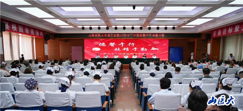 8月19日是第八個中國醫師節,節日主題是“德馨于行,技精于勤”。為積極傳遞醫院關愛,持續營造尊醫重衛的良好氛圍,進一步增強全院醫務工作者的職責感和使命感,8月14日下午,我校第二醫院召開2025年中國醫師節表彰大會。第二醫院黨委書記成曉龍講話,第二醫院黨委副書記、院長趙斌主持會議,全體院領導出席會議,全院各黨支部書記、科主任、護士長和受表彰人員代表參加會議。