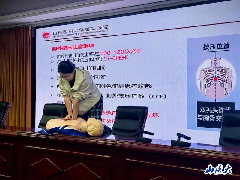為普及應急救護知識,提升高校師生自救互救能力,10月16日下午,我校附屬第二醫院西院區聯合共青團萬柏林區委,走進山西省財政稅務專科學校大禮堂,開展“‘救’在身邊 守護青春”主題急救科普活動。活動以“理論講解+實操演練+健康義診”的形式,為200余名師生傳授關鍵急救技能,并提供基礎健康診療服務,為校園安全筑牢“生命防線”。