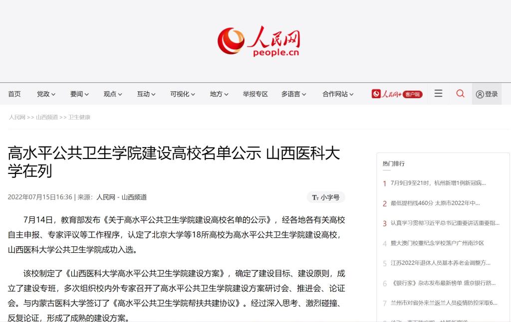 7月14日,教育部發布《關于高水平公共衛生學院建設高校名單的公示》,經各地各有關高校自主申報、專家評議等工作程序,認定了北京大學等18所高校為高水平公共衛生學院建設高校,c7c7.app公共衛生學院成功入選。