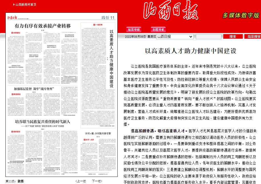 公立醫院是我國醫療服務體系的主體。近年來特別是黨的十八大以來,公立醫院改革發展作為深化醫藥衛生體制改革的重要內容,取得重大階段性成效,為持續改善基本醫療衛生服務公平性可及性、防控新冠肺炎等重大疫情、保障人民群眾生命安全和身體健康發揮了重要作用。中央全面深化改革委員會第十八次會議審議通過《關于推動公立醫院高質量發展的意見》,明確了新發展階段公立醫院的改革方向,勾勒出公立醫院資源配置要從“重物質要素”轉向“重人才技術”的路線圖。公立醫院要實現高質量發展,必須注重人才的高素質發展,要不斷創新人才培養機制,完善人才發展制度,營造人才成長環境,統籌推進公立醫院人才隊伍建設,為更好提供優質高效醫療衛生服務、防范化解重大疫情和突發公共衛生風險、建設健康中國提供有力支撐。