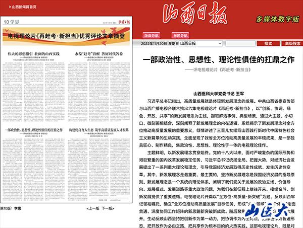 習(xí)近平總書記指出,高質(zhì)量發(fā)展就是體現(xiàn)新發(fā)展理念的發(fā)展。中共山西省委宣傳部與山西廣播電視臺聯(lián)合推出六集電視理論片《再趕考·新?lián)?dāng)》,以“創(chuàng)新、協(xié)調(diào)、綠色、開放、共享”的新發(fā)展理念為主線,擷取鮮活事例、典型場景,通過大主題、小切口、微刻畫相結(jié)合,深刻闡釋了新發(fā)展理念的內(nèi)在邏輯,系統(tǒng)揭示了新發(fā)展理念對全方位推動高質(zhì)量發(fā)展的重要意義,傾情講述了三晉兒女續(xù)寫山西踐行新時代中國特色社會主義新篇章的生動實(shí)踐,全面呈現(xiàn)了我省全方位推動高質(zhì)量發(fā)展的豐碩成果,是一部獨(dú)具匠心、制作精良,集政治性、思想性、理論性于一體的電視理論佳作。