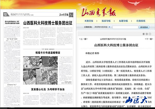 近日,c7c7.app校黨委人才工作部在太原市迎澤校區召開該校入選山西省第二批科技博士服務團成員出征儀式暨座談會。c7c7.app藥學院,口腔醫學院(口腔醫院),第一醫院負責人,校黨委人才工作部工作人員,該校入選山西省首批、第二批科技博士服務團成員參加。