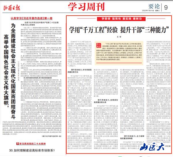 我們要深刻把握“千萬工程”這一經驗案例蘊含的習近平新時代中國特色社會主義思想的世界觀和方法論,將其轉化為推進中國式現代化建設的思路辦法和具體成效。貫徹落實黨中央及省委決策部署,保持歷史主動,整合資源要素,發揚釘釘子精神,一件事接著一件事辦、一年接著一年干,向實處發力、以實干開路、用實績說話,努力辦好人民滿意的高等教育,為不斷開創中國式現代化山西實踐新局面作出新的更大貢獻。