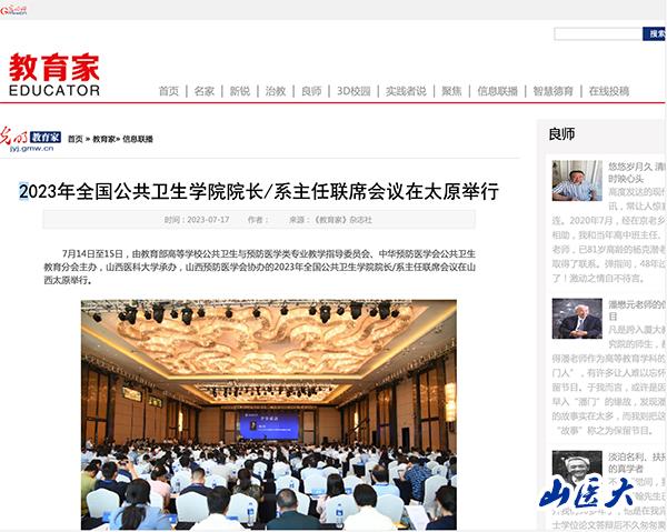 7月14日至15日,由教育部高等學校公共衛生與預防醫學類專業教學指導委員會、中華預防醫學會公共衛生教育分會主辦,c7c7.app承辦,山西預防醫學會協辦的2023年全國公共衛生學院院長/系主任聯席會議在山西太原舉行。